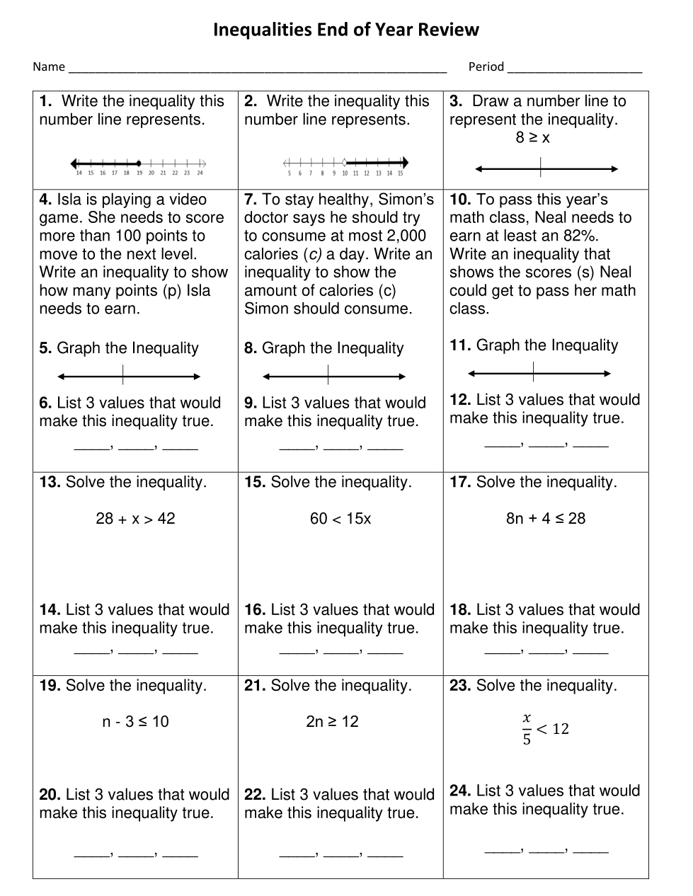 Write an inequality to shows the scores Neal could get to pass her math class.