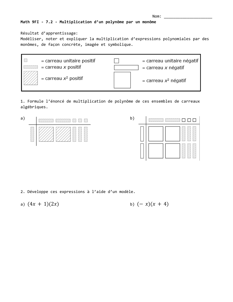 Math 9FI - 7.2 - Multiplier un polynôme par un monôme
