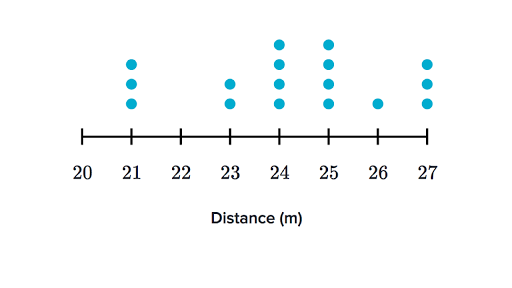 The line plot below, represents students that have run between 20m and 27m in the school running club.
