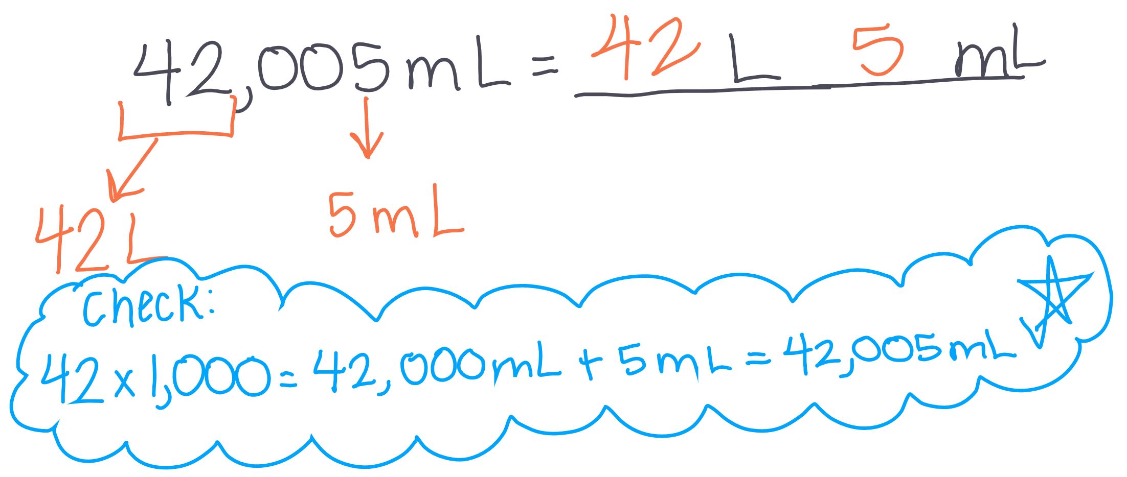 RULE: 1 L = 1,000 mL86,003 mL = ________L________mL