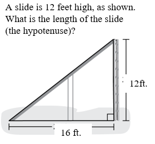 Find the hypotenuse of the triangle. Show your work.