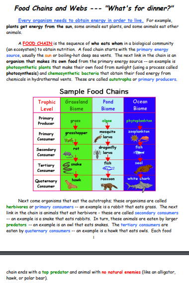 What travels through a food chain or food web?