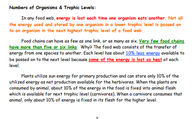All the energy used and stored by an organism in a lower trophic level is passed on to the organism in the next highest trophic level.