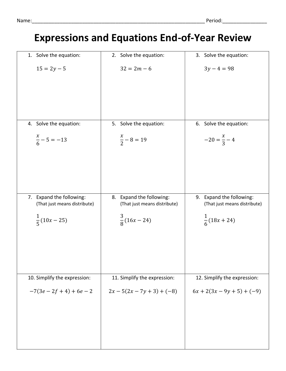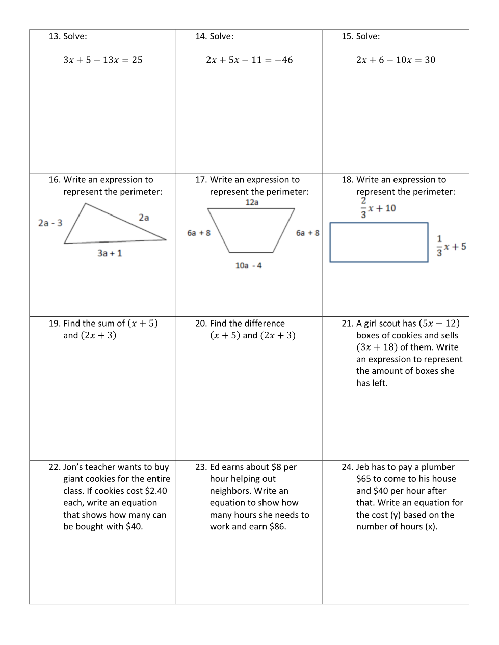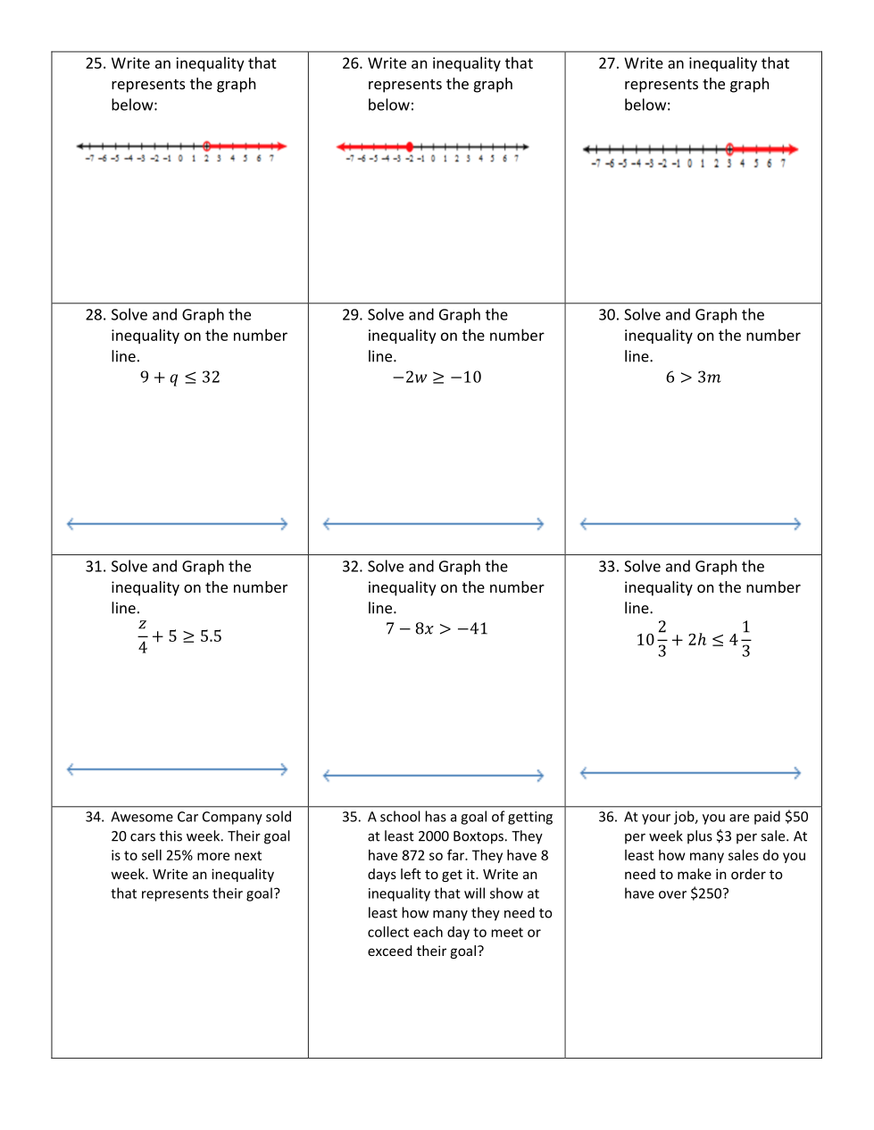 Type your answer from your worksheet. Remember to include the letter when solving and equation or inequality.
