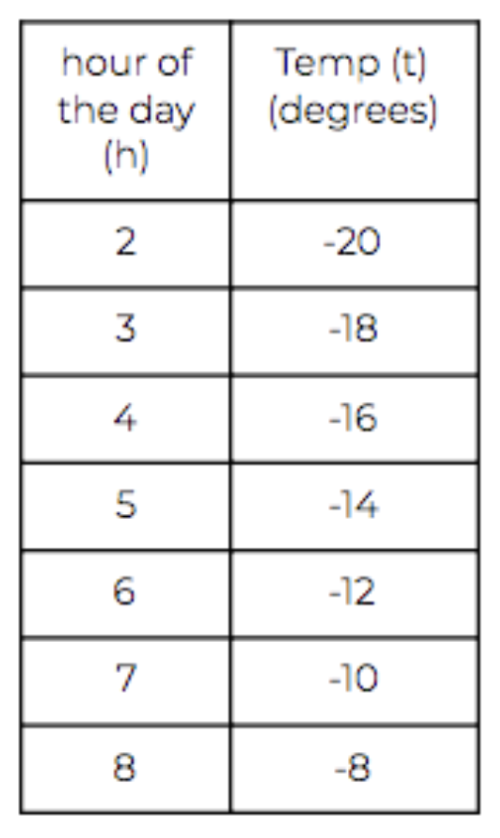 The temperature in Nome, Alaska on January 1st, can be represented by the following table.
