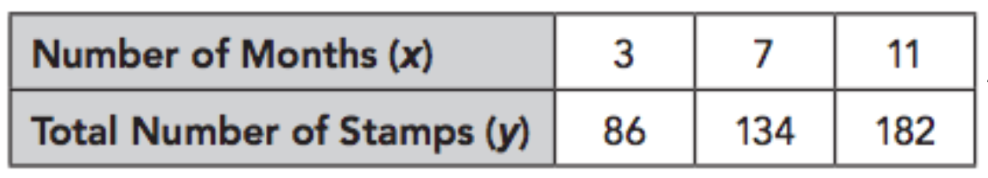 Abdul has 50 stamps in his collection. When he joins a stamp club , he receives 12 stamps every month from the club