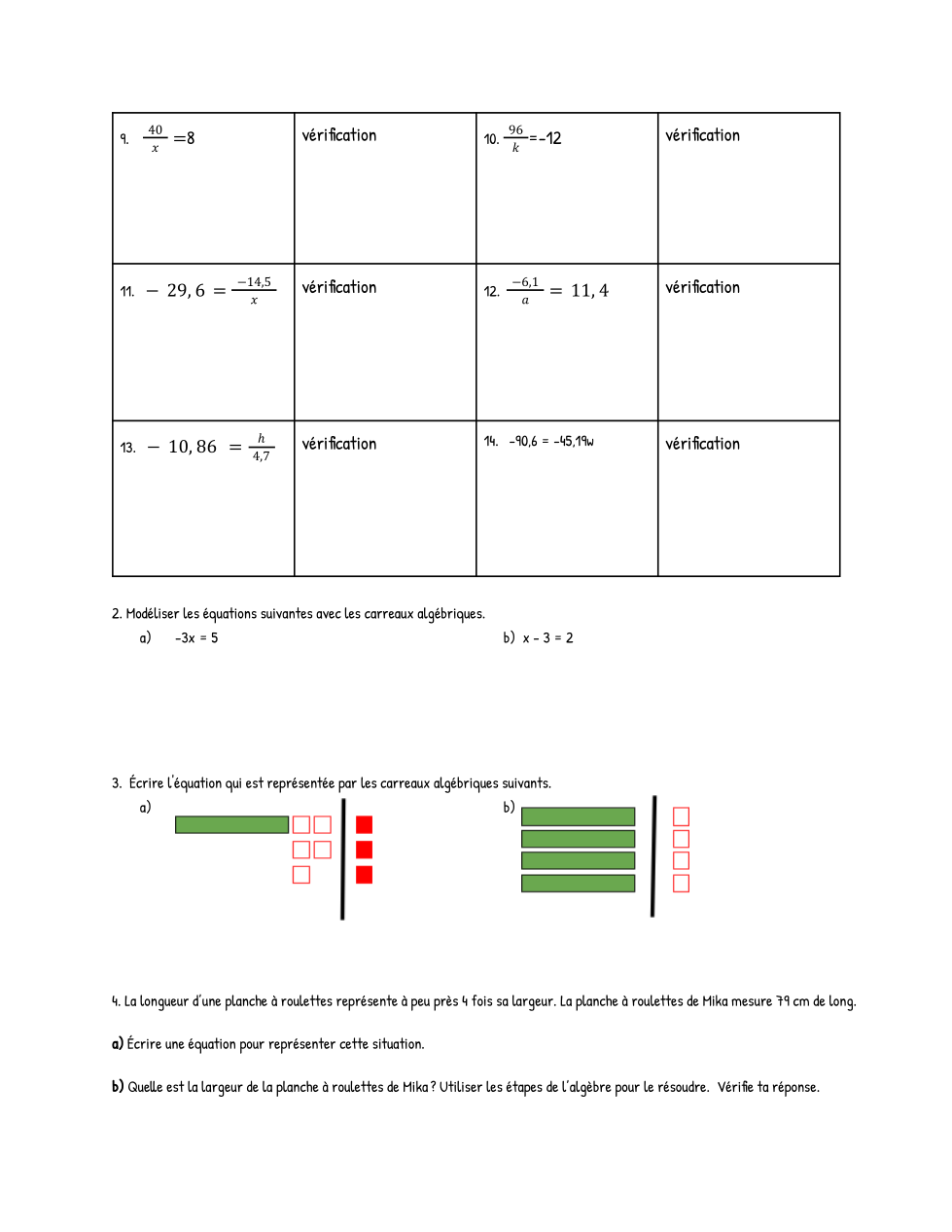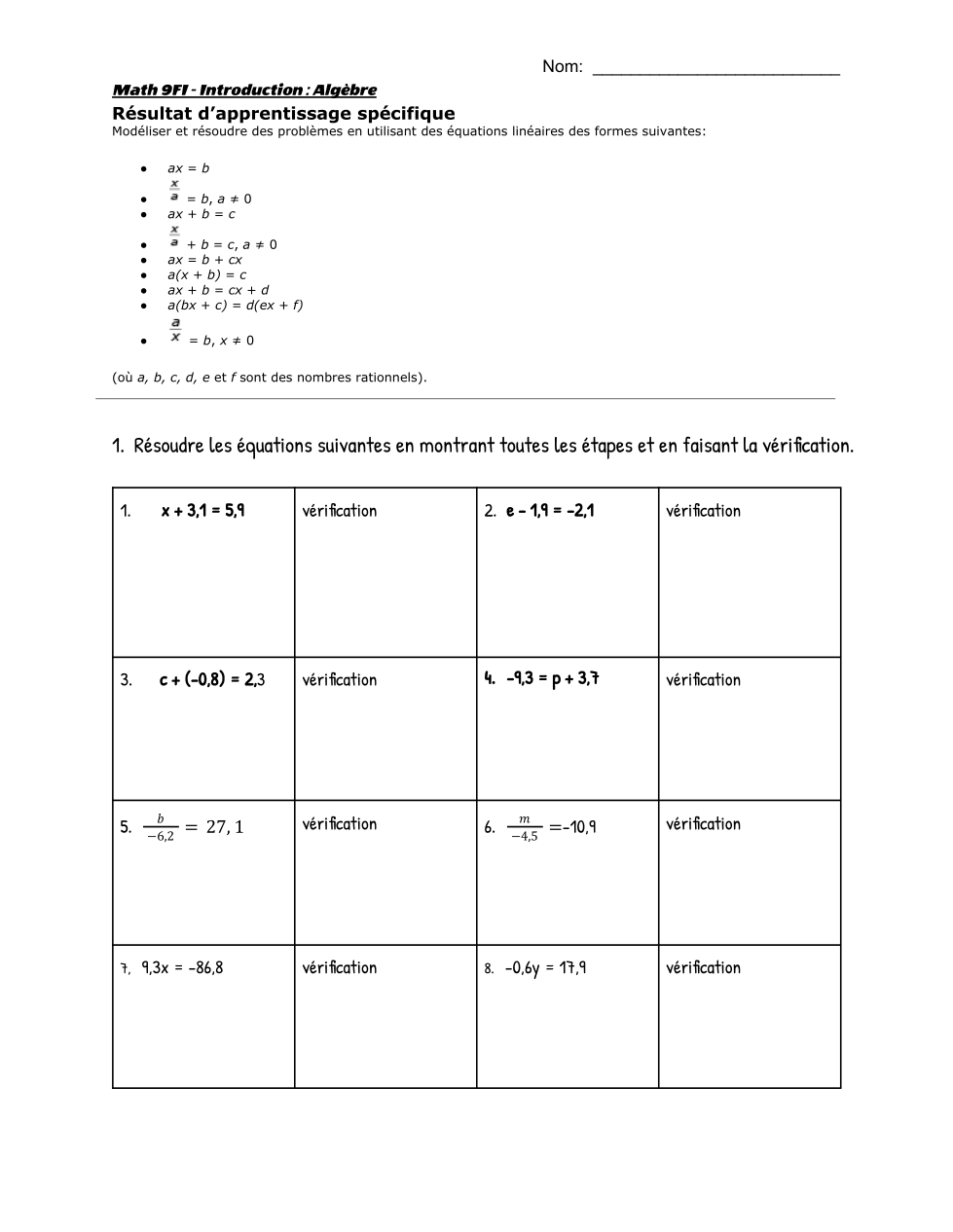 Modéliser et résoudre des problèmes en utilisant des équations linéaires des formes suivantes: