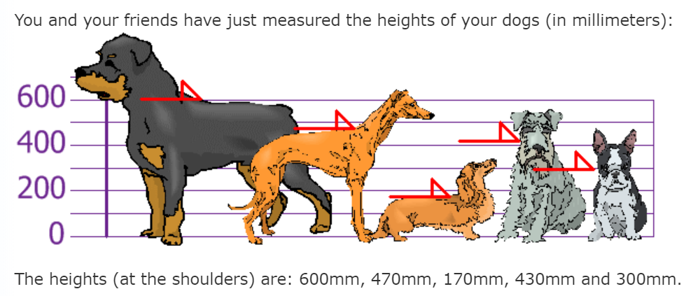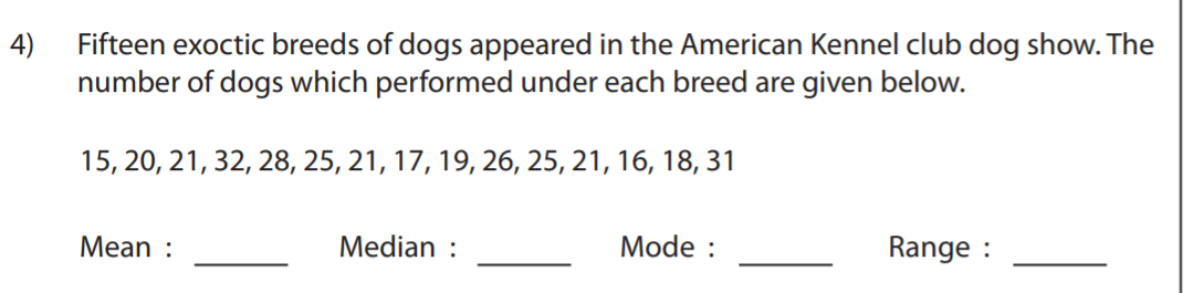 In the previous problem, if another dog breed was added with 72 dogs in it, how much would it change the mean, median, mode, and range of the data?