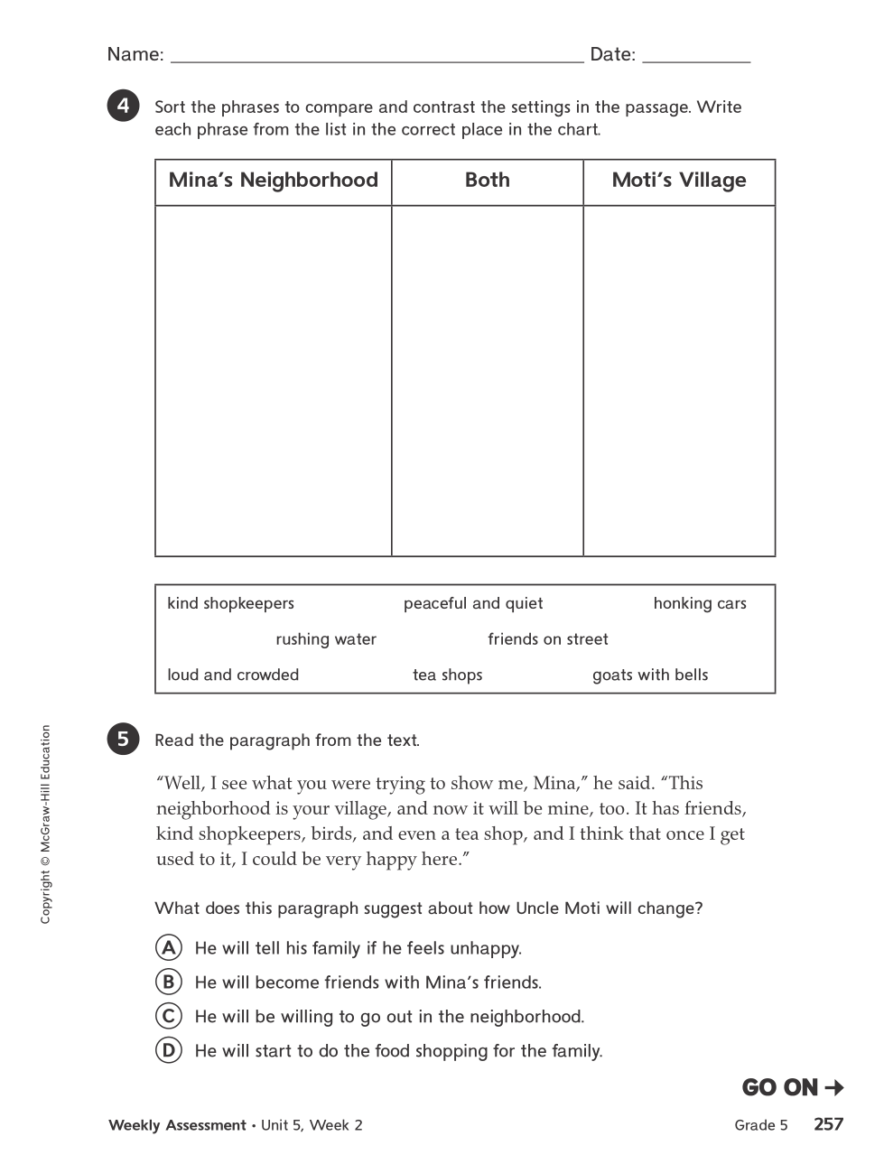 Sort the phrases to compare and contrast the settings in the passage. Write each phrase from the list in the correct place in the chart.