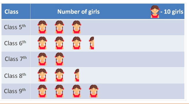 Be careful - look at the key! How many fewer girls are in the 7th class than the 5th class?
