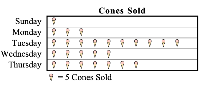Ice Cream Shop Sales How many ice cream cones did they sell on Thursday? Don't forget to look at the key!