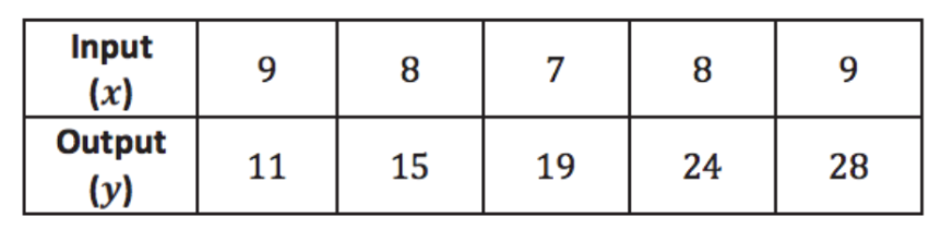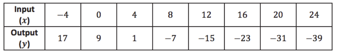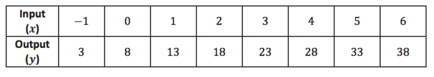 Examine the data in the table below. The inputs and outputs represent a situation where constant rate can be assumed. Determine the equation that describes the function.