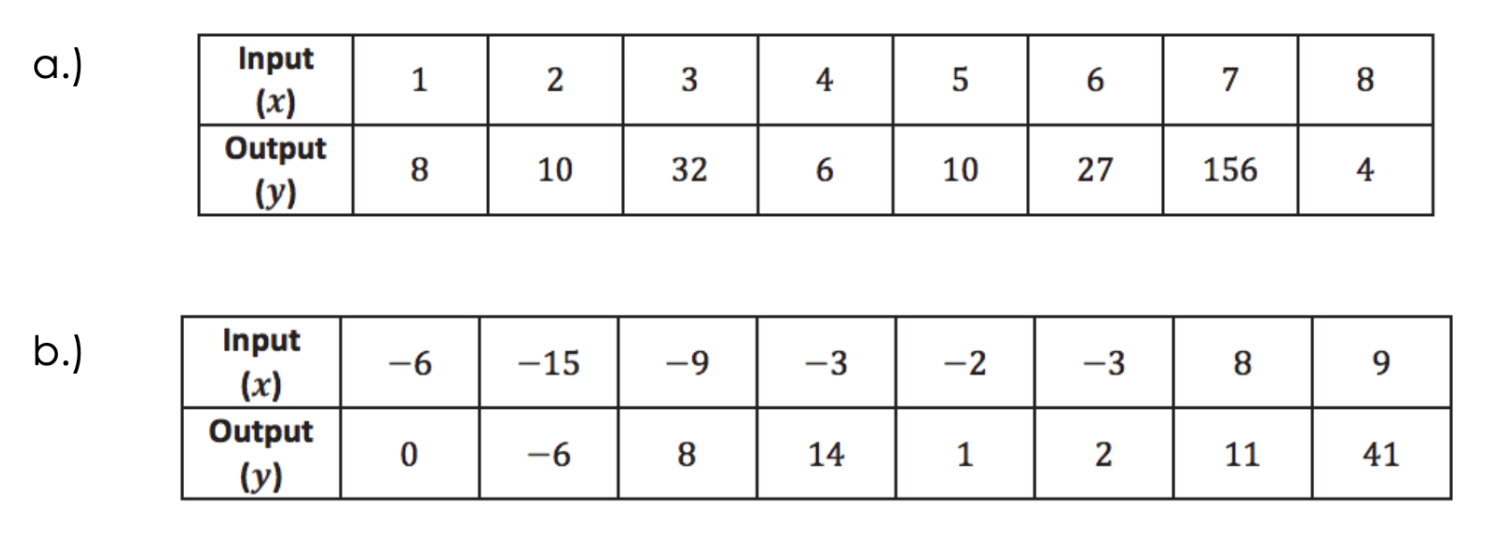 Meka said that the set of data in part (a) describes a function, but the set of data in part (b) does not.