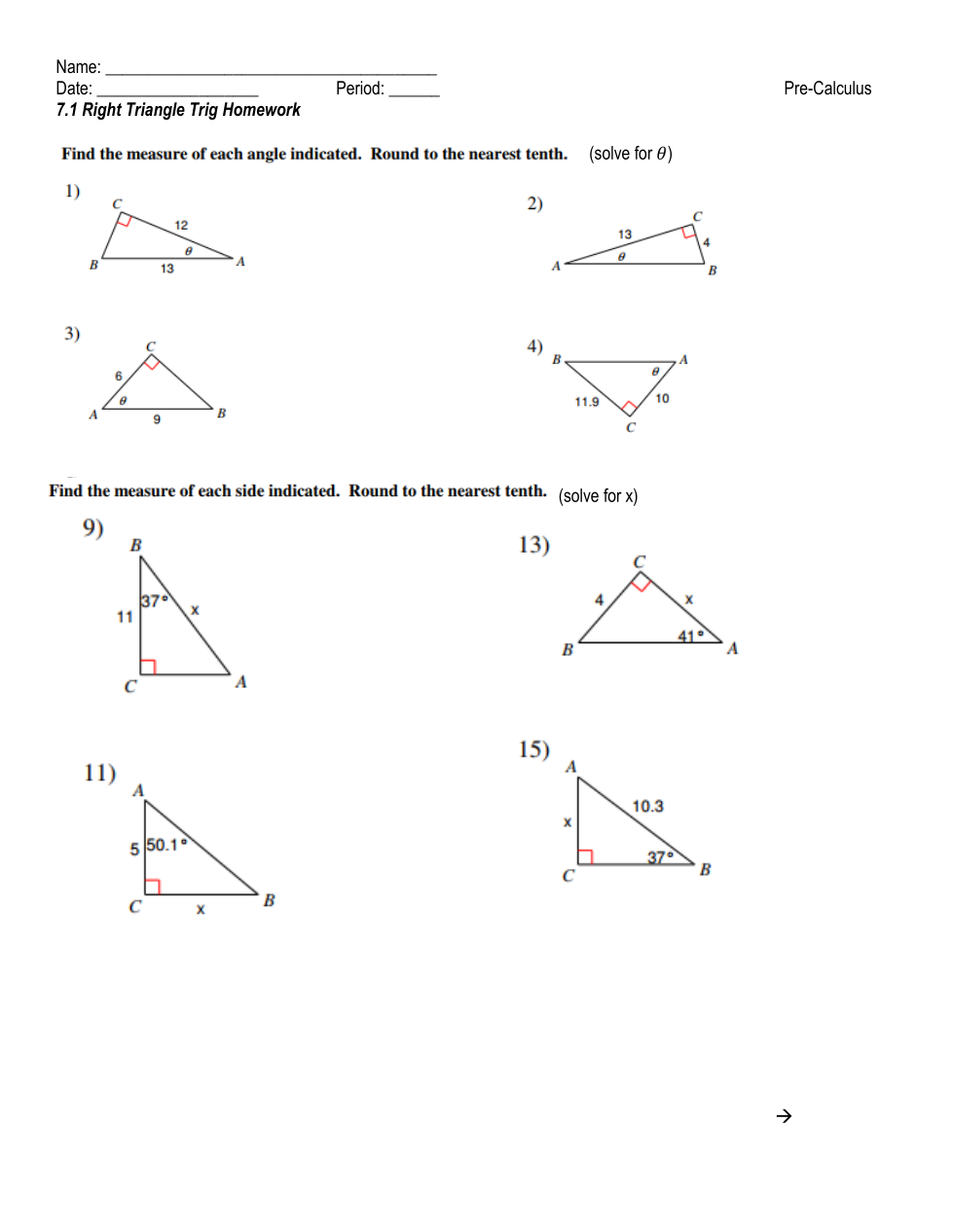 For #4-7 you'll need to solve for an angle (\theta). Remember to use inverse trig functions when solving for an angle: