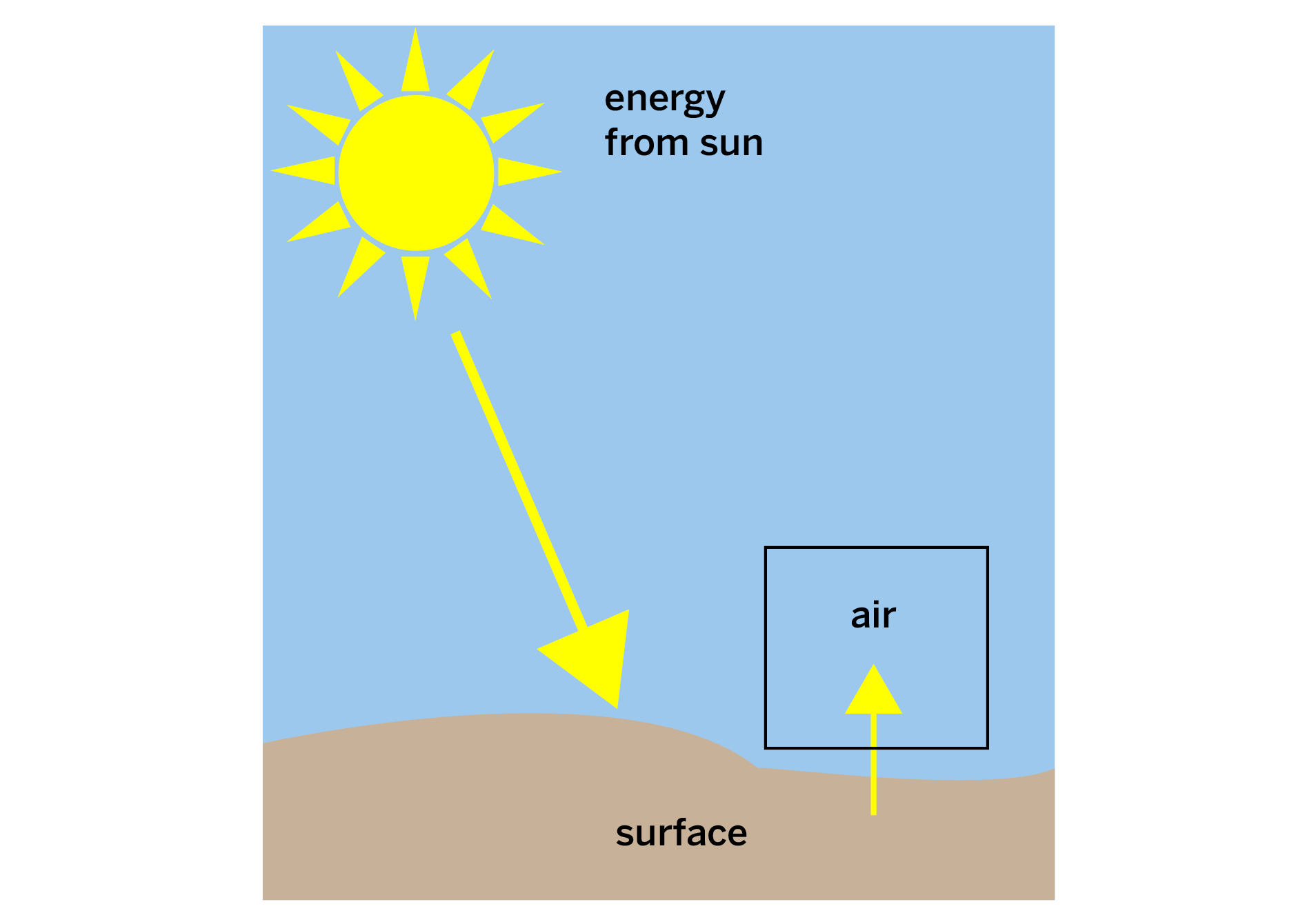 What do you notice about the temperature of the surrounding air at different heights above Earth’s surface?