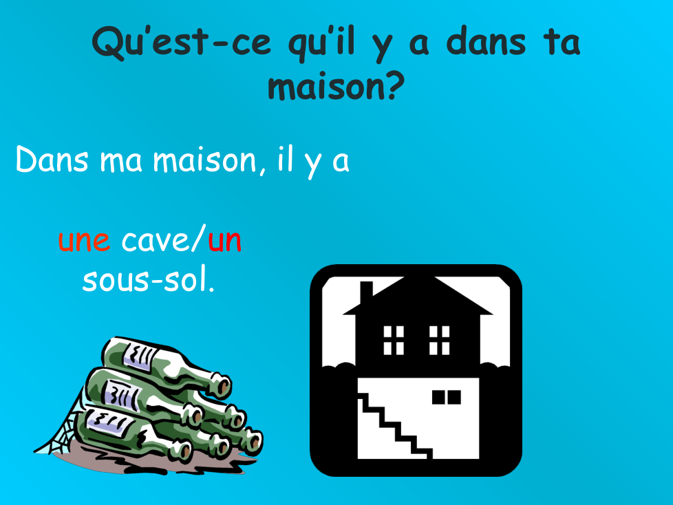 - la cave/le sous sol --> dans la cave/dans le sous-sol