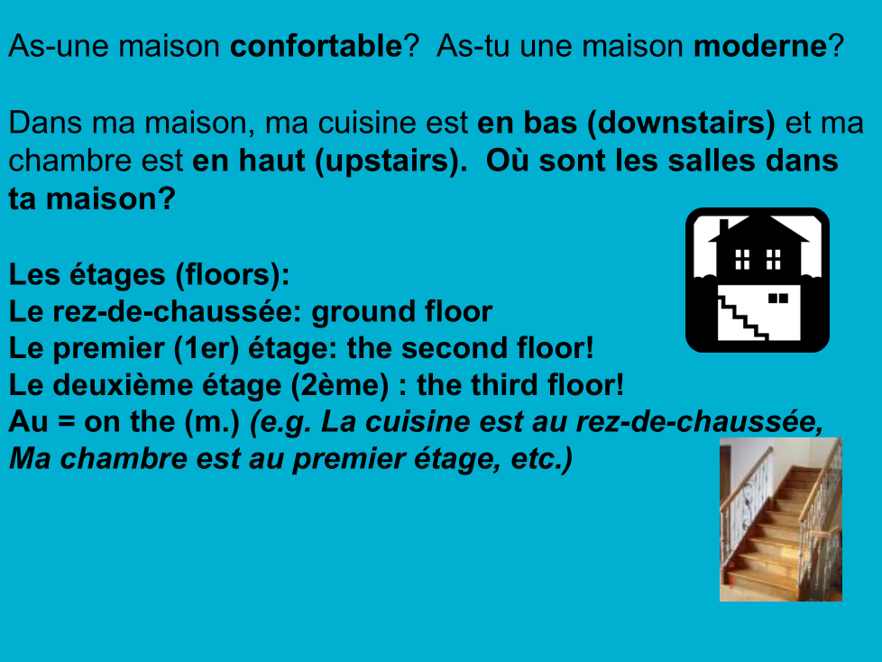 Quels adjectifs décrivent (describe) une maison? Quel est leur placement? BANGS? Pas BANGS?