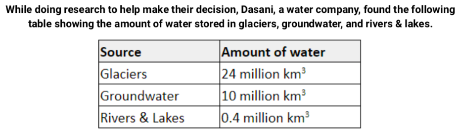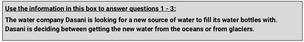 Which of the following arguments best supports the choice to get water from glaciers? (2 pts)