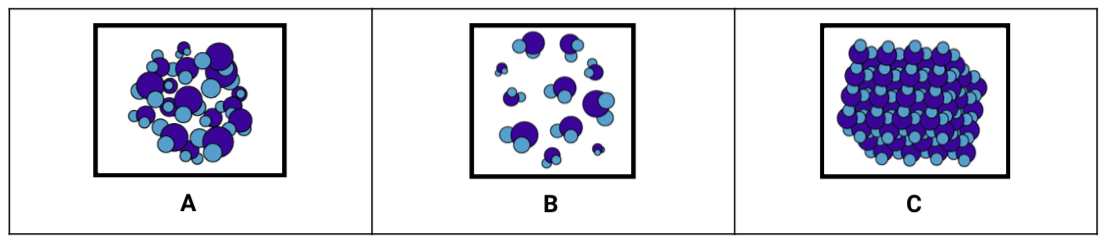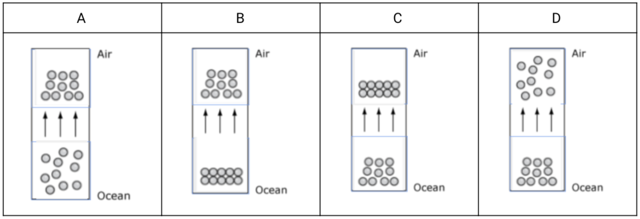 On a summer day, water particles from the ocean change phase as they move into the air. Which model best shows this change? Use the models above. (2 pts)
