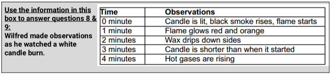 Which of Wilfred’s observations shows that a chemical reaction has taken place? (2 pts)