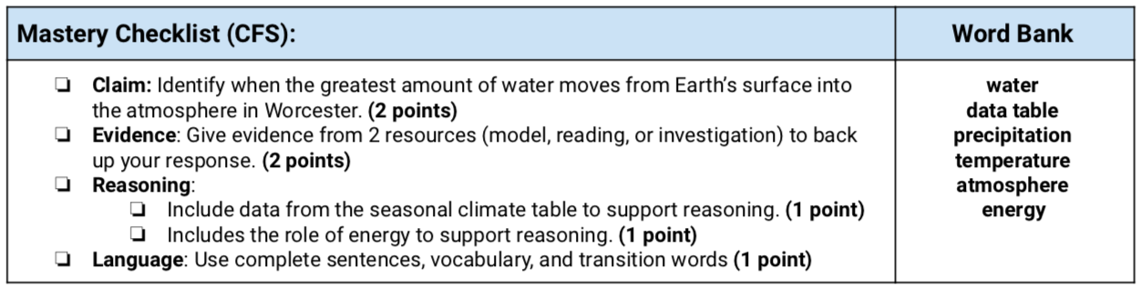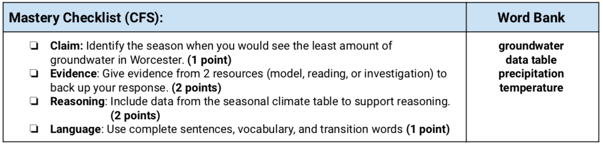 Claim: Which season (winter, spring, summer, or fall) will have the least amount of groundwater? (2 points)