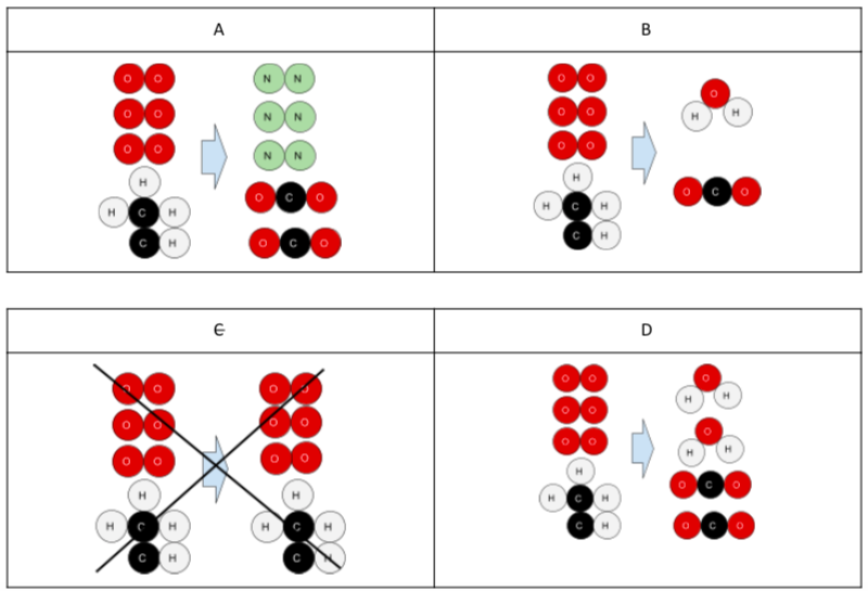 Which of the following models could show what happened to the molecules of the candle including the oxygen in the air during the chemical reaction? (2 pts)