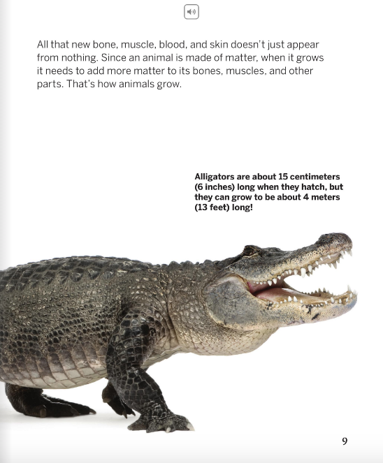 Think back to the sentences your wrote from page 9 and 10. From the information in the text, how do animals grow?