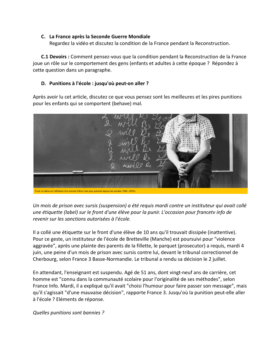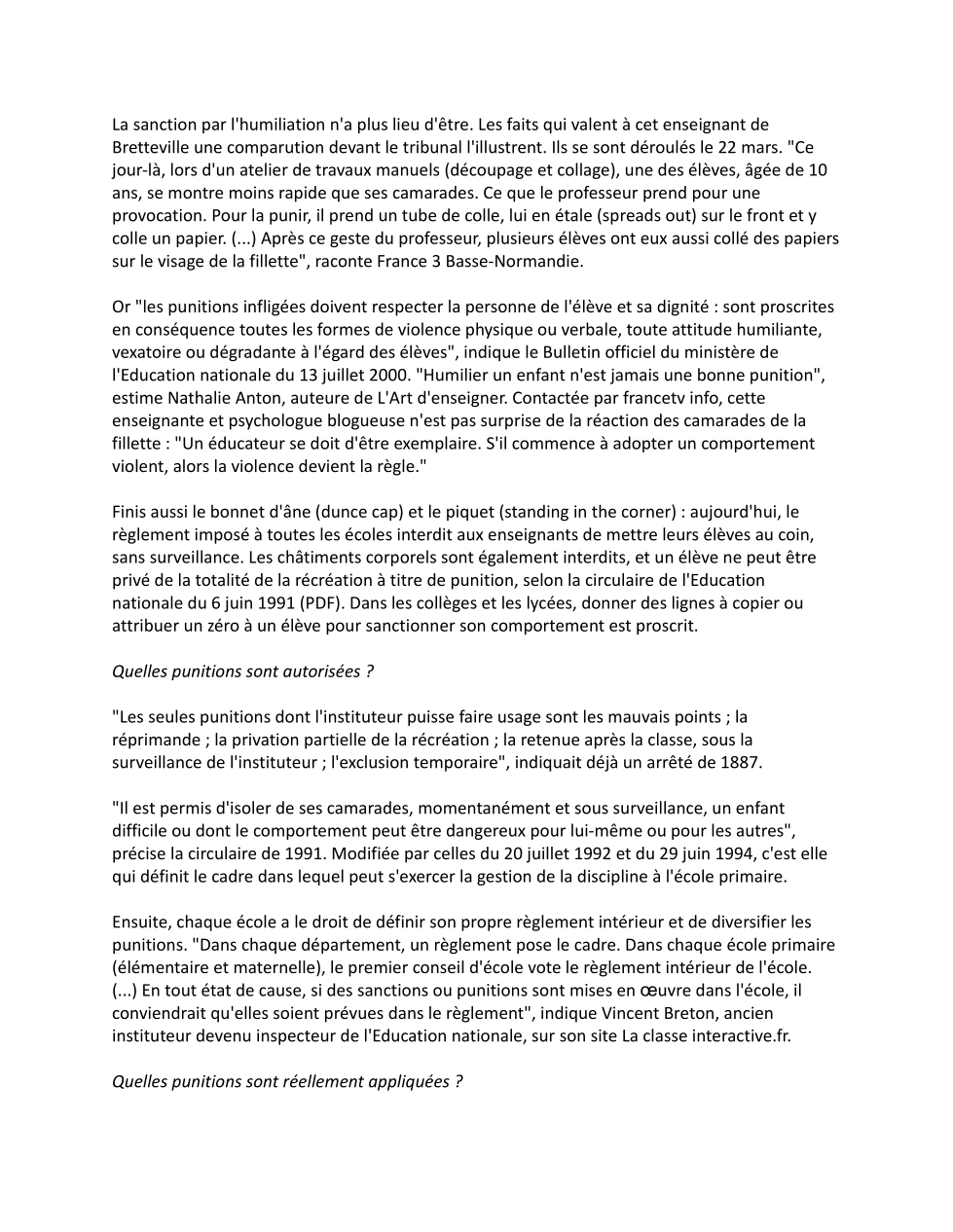 Quelles punitions/conséquences étaient les plus/moins efficaces pour toi en tant qu'un(e) élève?