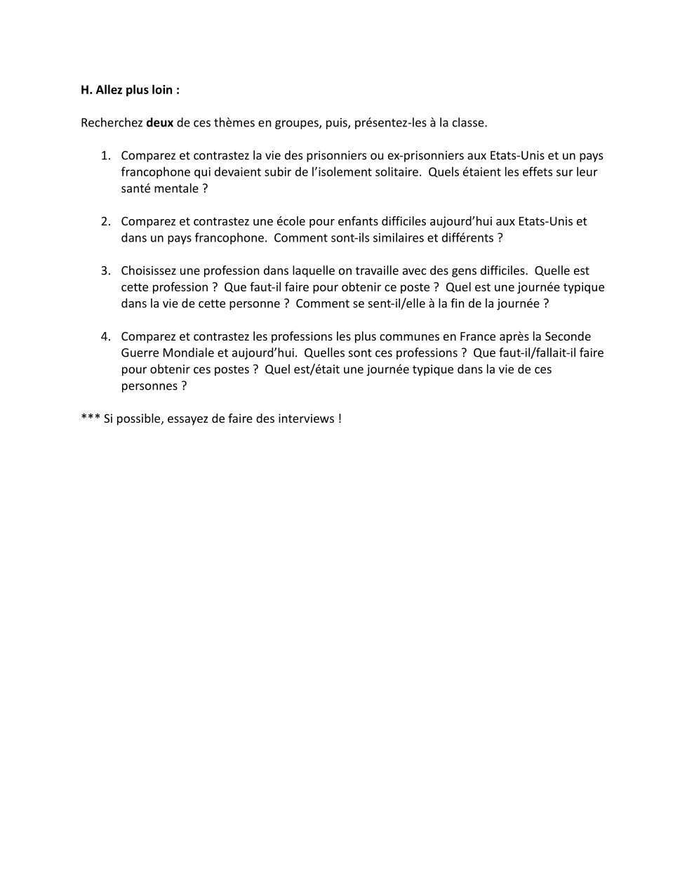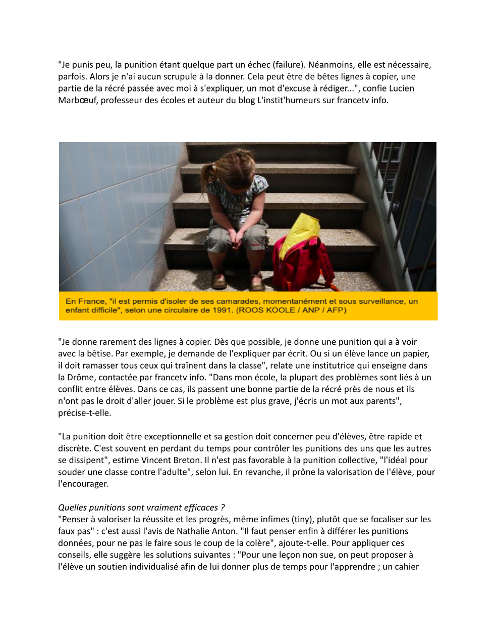L’isolement comme châtiment (punishment) : Quand est-il un châtiment approprié ? Pourquoi ? Pendant combien de temps ? S’il n’est jamais approprié, pourquoi pas ?