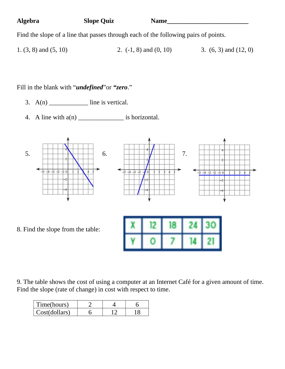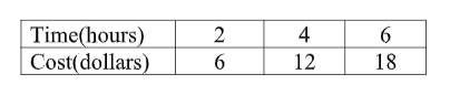 The table shows the cost of using a computer at an Internet Cafe for a given amount of time. Find the slope (rate of change) in cost with respect to time.