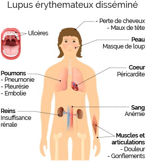 AUTHENTIC RESOURCE: What are at least 5 parts of the body affected by lupus (an autoimmune disease)? Answer in English.