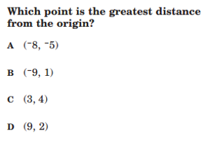 use (0,0) as a point (since the segment starts at the origin)...then use the distance formula to find the distance between (0,0) and each point above. The point that gives you the largest distance is your answer.