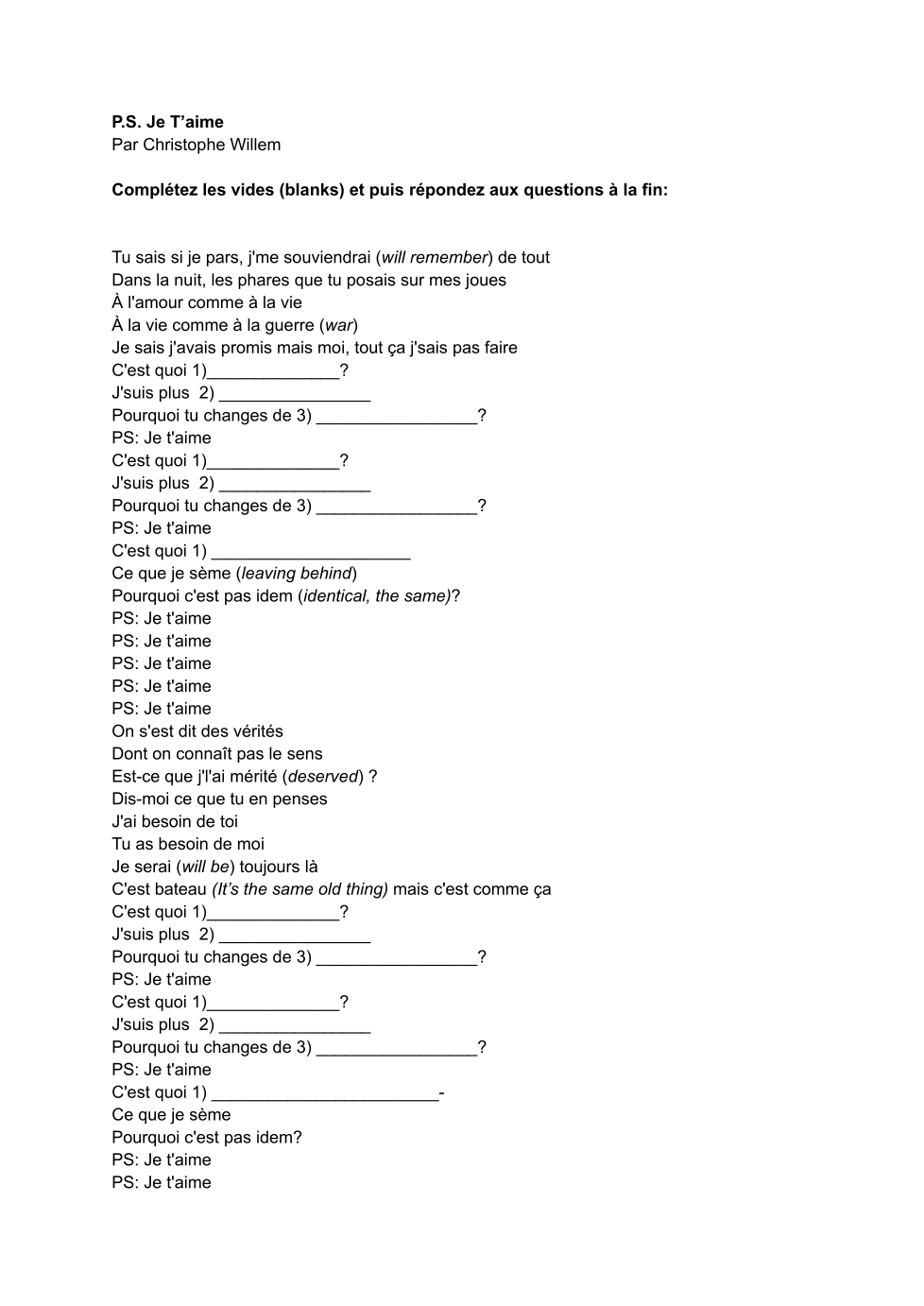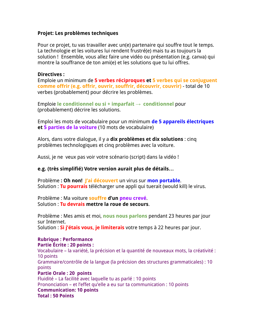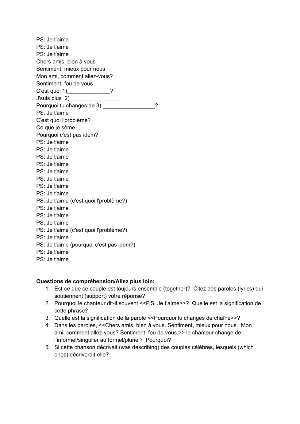 Après plusieurs années à une petite école, j' (1) _______ mon C.V. (resumé) à Flint Hill School et je (2) _______ prof de français. J' (3) _______ un très bon salaire, peut-être $1.000.000 par an. J' (4) _______ un bon assistant qui ferait tout le travail que je ne veux pas faire. Nous (5)_______ des leçons ensemble et nous (6) _______souvent à Paris. Les élèves me _______ à Madame Goldstein parce que je serais plus cool.