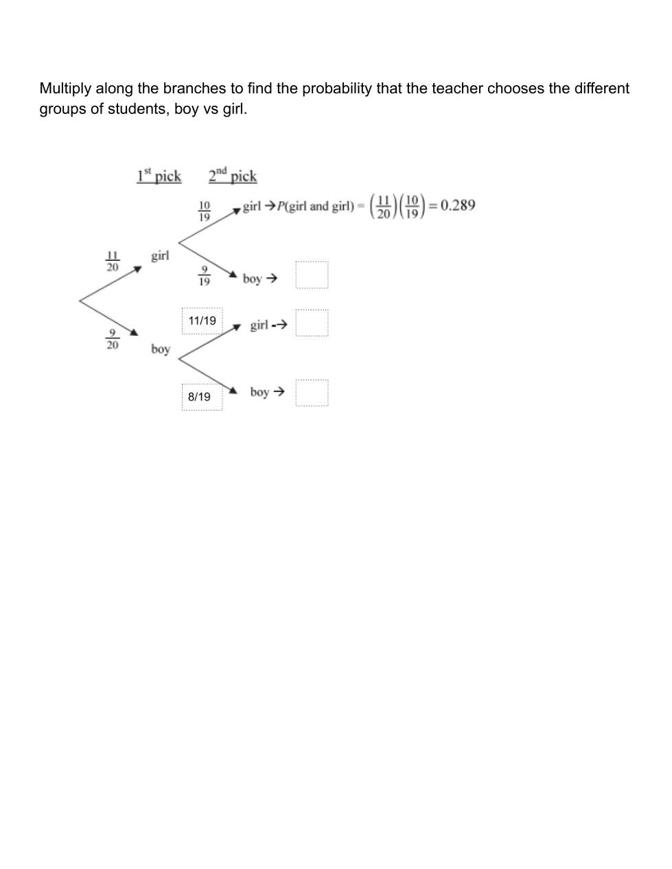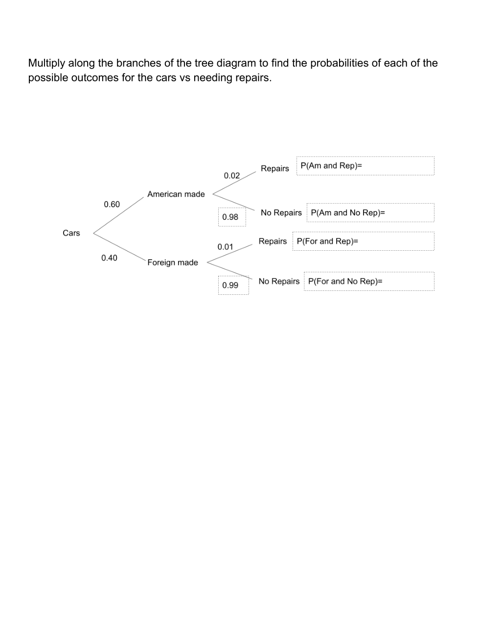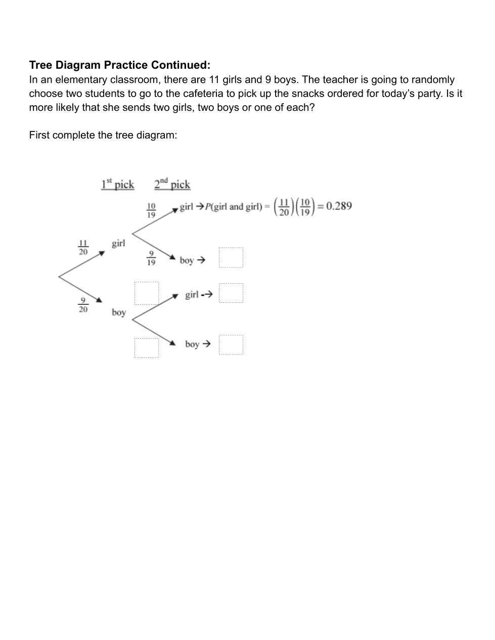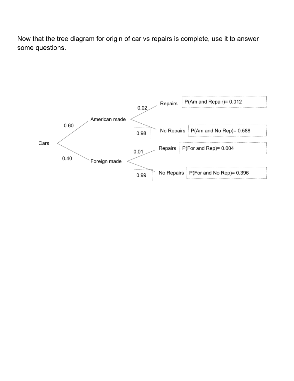 We can use these facts to fill in the next branches in the tree diagram like this: