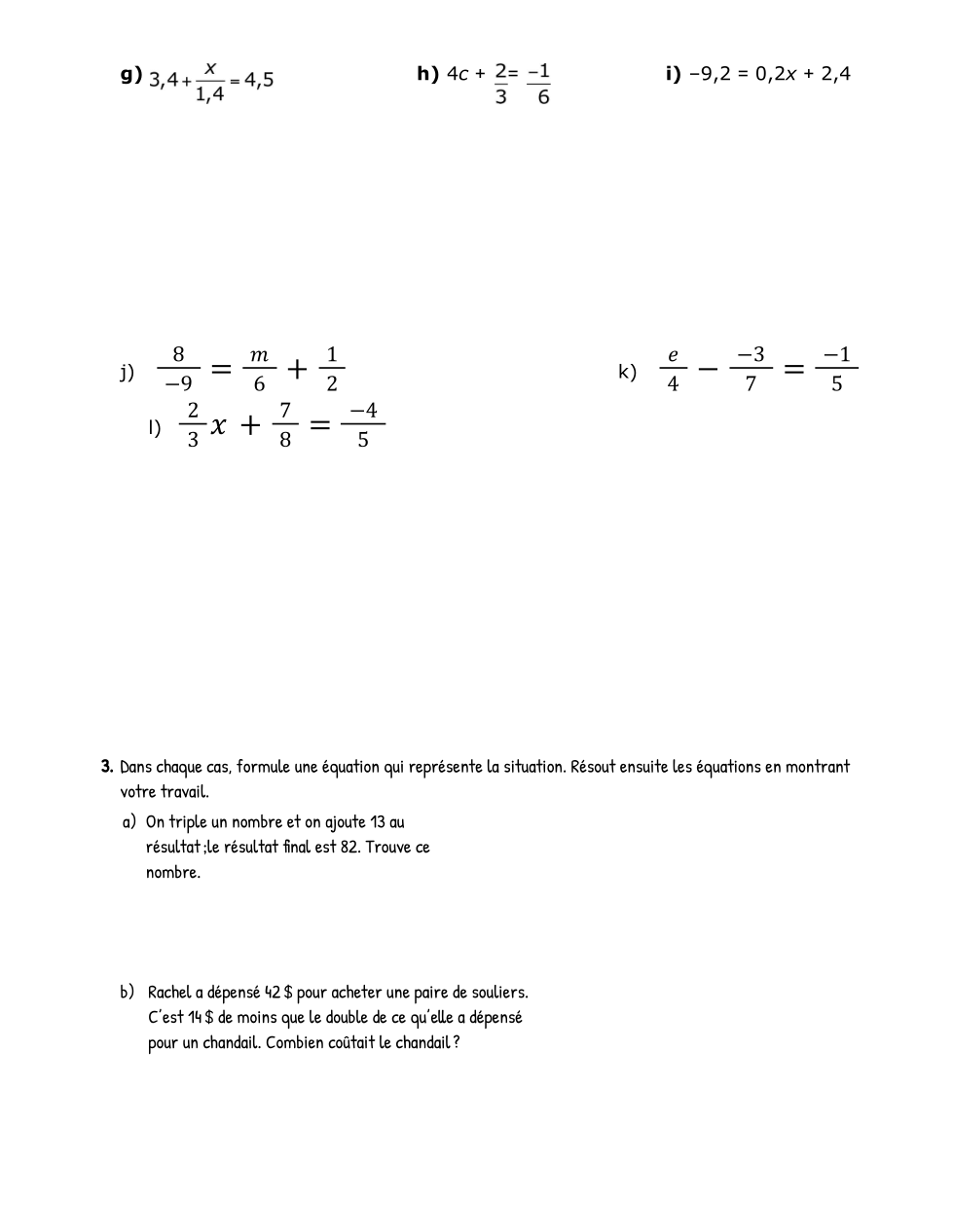 Modéliser et résoudre des problèmes en utilisant des équations linéaires des formes suivantes: