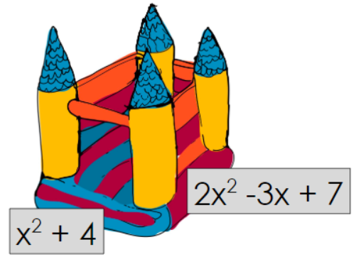 Examine the bouncy castle. The length and width (in feet) of the bottom of the castle are shown.