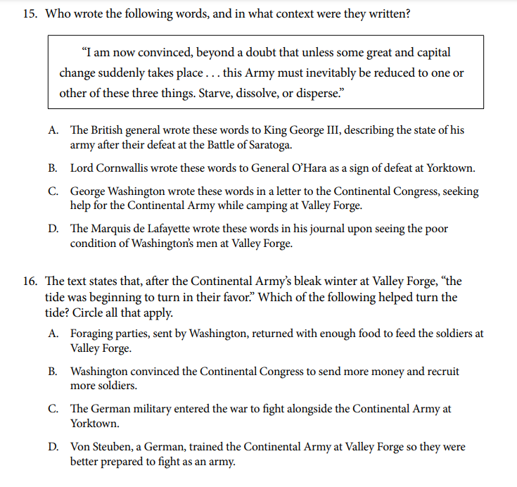 - Friedrich von Steuben joined Washington’s troops at Valley Forge and trained a model company in the use of bayonets and muskets.