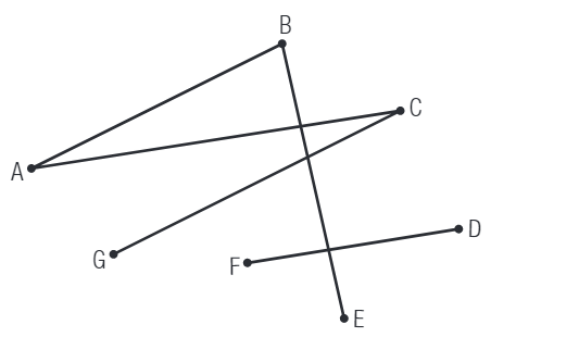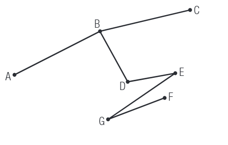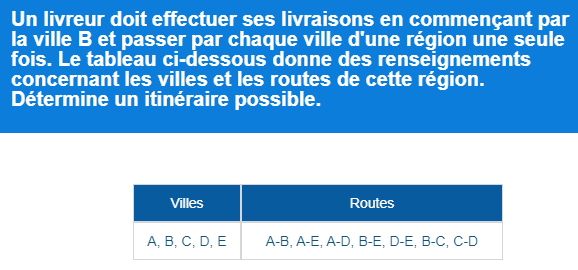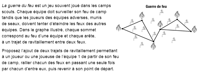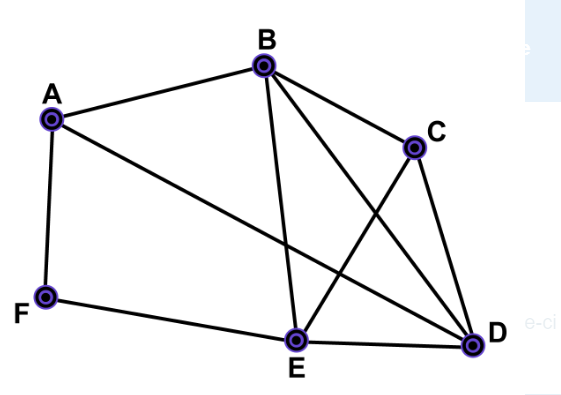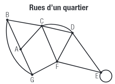Dans le graphe ci-contre, chaque sommet correspond à une intersection et chaque arête, à une rue d'un quartier. Est-il possible pour le balai mécanique de la voirie de parcourir chacune des rues de ce quartier une seule fois? Expliquer votre réponse.