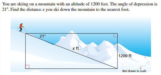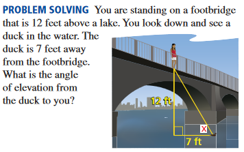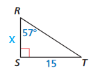 Find the value of x using one of the trigonometric functions (sin, cos, tan).