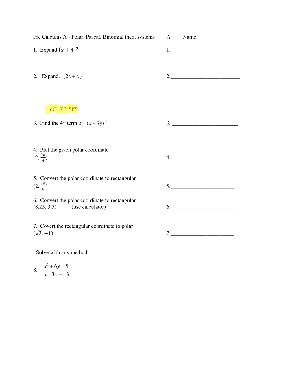 Polar, Pascal, Binomial theorem, Systems