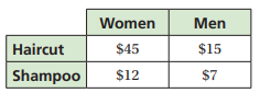 Find the earnings for giving a haircut and a shampoo to m men and w women. (Your answer should be an expression)