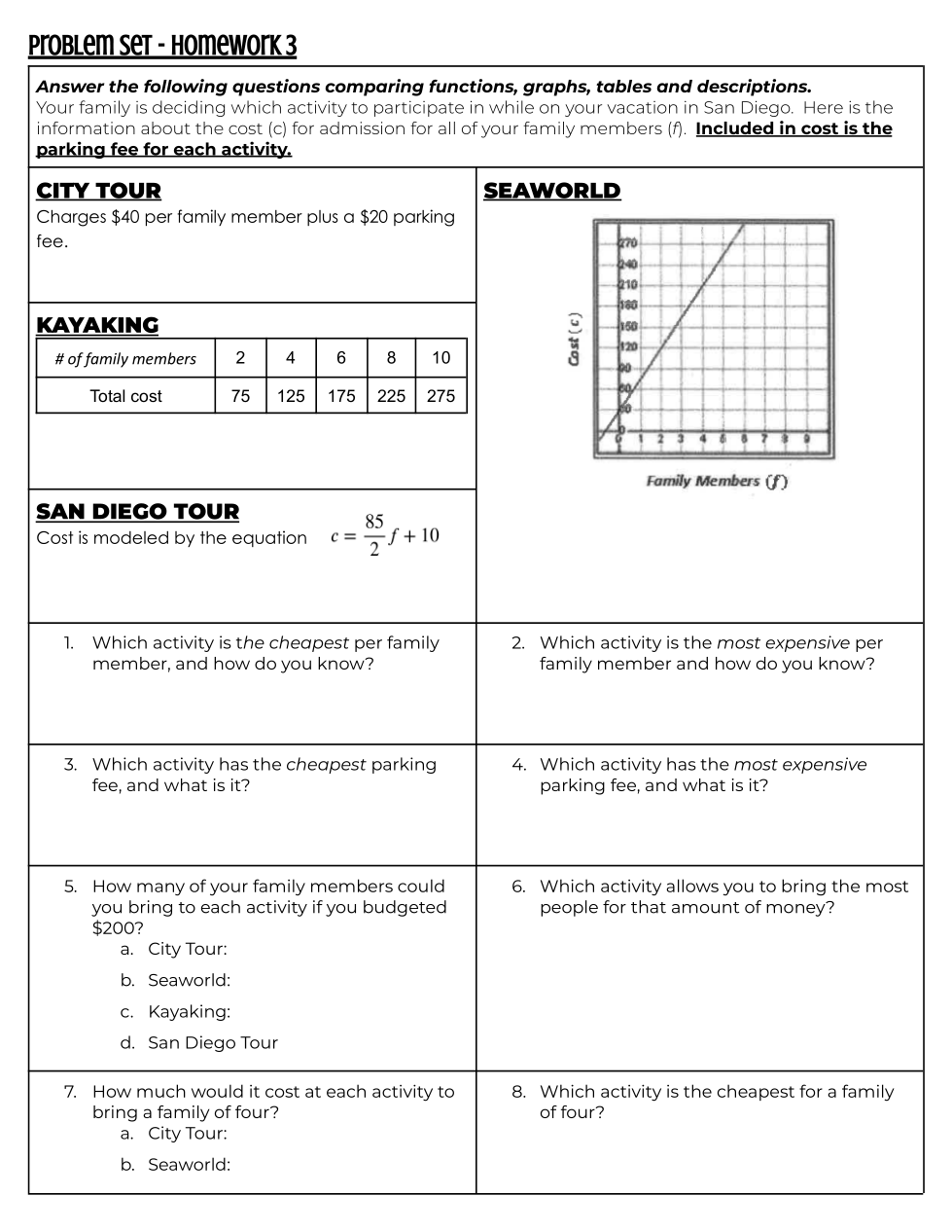 Your family is deciding which activity to participate in while on your vacation in San Diego.