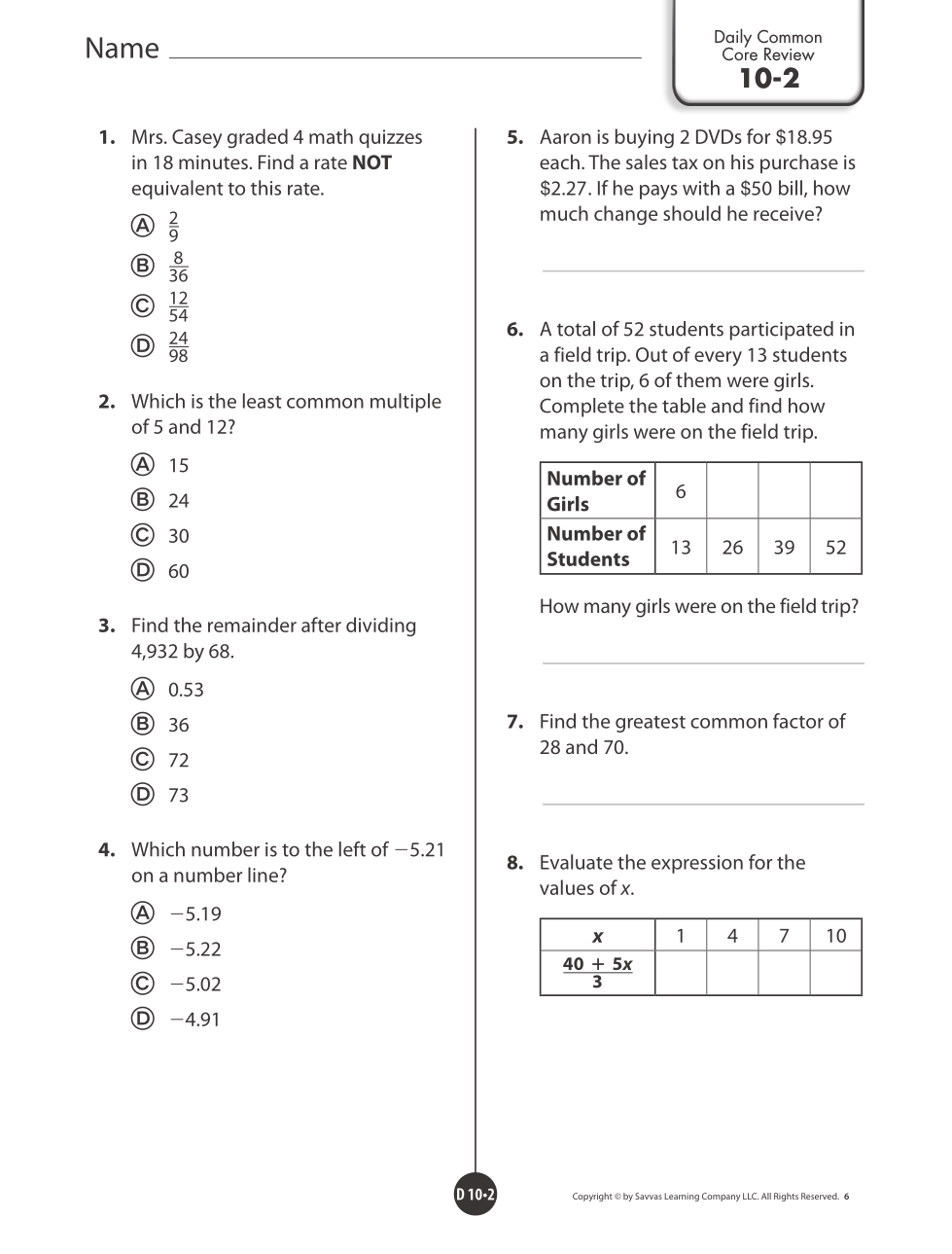 List the three numbers that would complete the chart. Use commas and a space between each number.