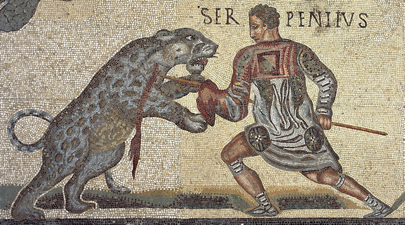 "Alypius . . . had arrived in Rome before I did to study law. There he had been seized by an incredible obsession for gladiatorial spectacles and to an unbelievable degree. He [had] held such spectacles in aversion and detestation; but some of his friends and fellow-pupils on their way back from a dinner happened to meet him in the street and, despite his energetic refusal and resistance, used friendly violence to take him into the amphitheatre during the days of the cruel and murderous games. . . . [In the arena,] a man fell in combat. A great roar from the entire crowd struck [Alypius] with such vehemence that he was overcome by curiosity. Supposing himself strong enough to despise whatever he saw and to conquer it, he opened his eyes. He was struck in the soul by a wound graver than the gladiator in his body, whose fall had caused the roar. The shouting entered by his ears and forced open his eyes. . . . As soon as he saw the blood, he at once drank in savagery and did not turn away. His eyes were riveted. He imbibed madness. Without any awareness of what was happening to him, he found delight in the murderous contest and was inebriated by bloodthirsty pleasure. He was not now the person who had come in, but just one of the crowd which he had joined, and a true member of the group which had brought him. What should I add? He looked, he yelled, he was on fire, he took the madness home with him so that it urged him to return not only with those by whom he had originally been drawn there, but even more than them, taking others with him. Nevertheless, from this you delivered him by your most strong and merciful hand. . . . But that was much later.”