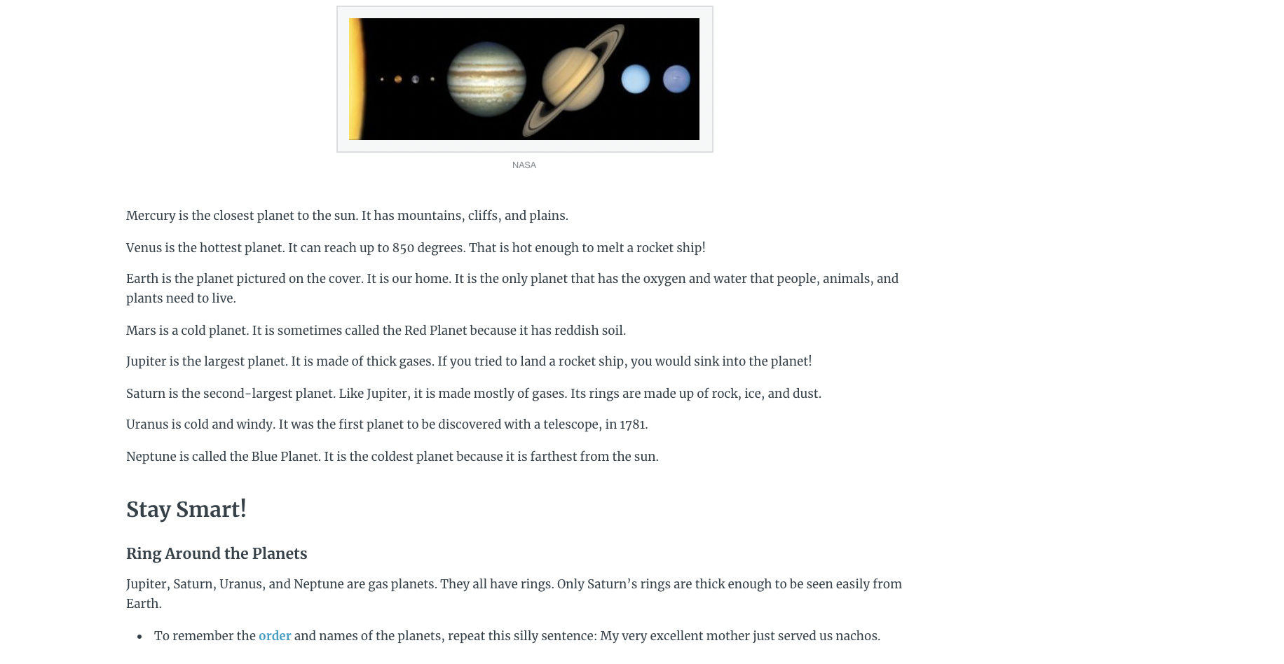 Saturn | arrow_right_alt | The planet that is closest to the sun. |