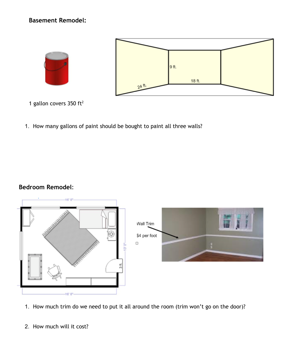 How many gallons of paint should be bought to paint all three walls? You can not buy a part of a gallon(include full gallons).
