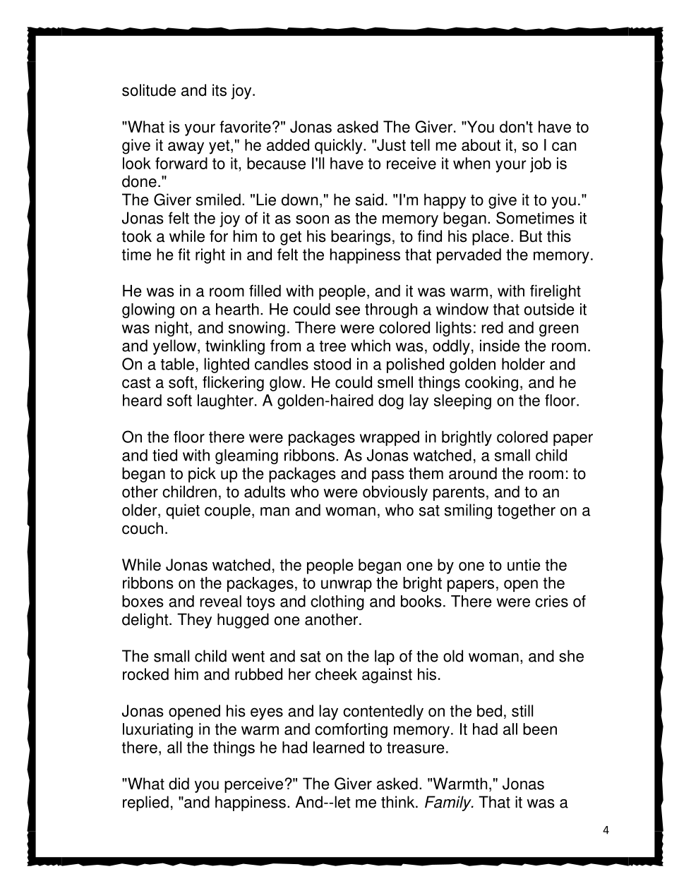 Make a prediction: Now that Jonas has decided not to take the pill that suppresses the normal emotions of development what do you think is going to happen?
