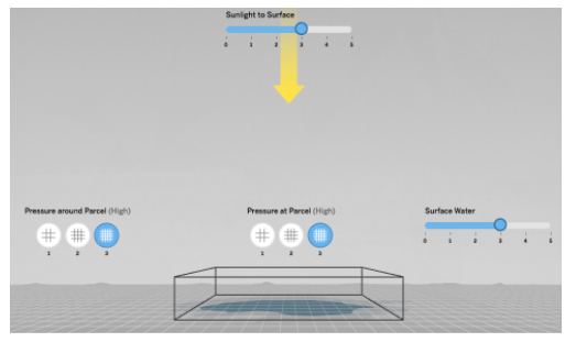 - Set the sliders for Sunlight to Surface and Surface Water to level 3.