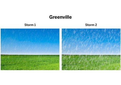 The town of Greenville had two rainstorms in March. Storm 2 had more rainfall than Storm 1.