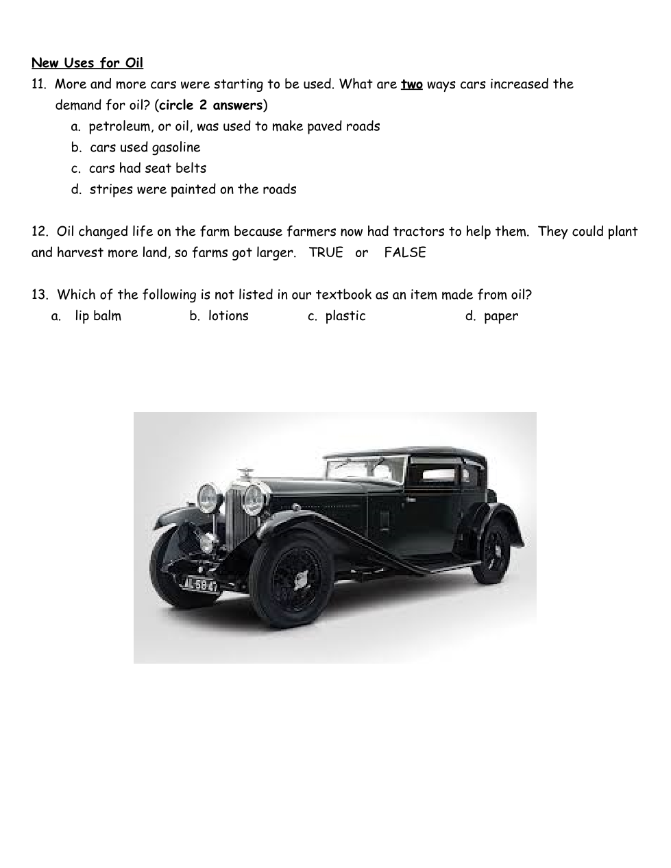 More and more cars were starting to be used, What are two ways cars increased the demand for oil? (pick 2 answers)